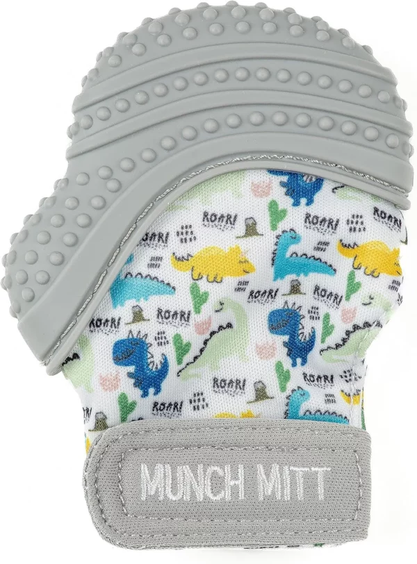 - Adjustable Strap: The adjustable strap ensures a secure fit for all hand sizes, making the Munch Mitt suitable for both infants and toddlers. It’s a teether that grows with your baby.
