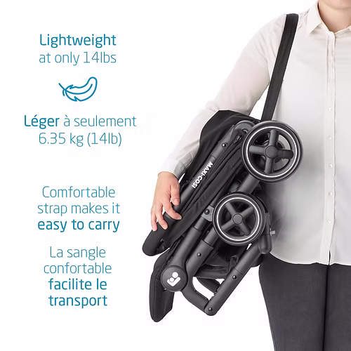 With the super convenient Lara, it’s easy to navigate through your day-to-day travels. It maneuvers with ease around every turn, folds compactly with a simple touch, and loads effortlessly into the smallest of spaces. It’s ultra-light and once you’ve arrived at your destination, it easily carries over your shoulder with a comfy strap and is a breeze to bring inside or upstairs.